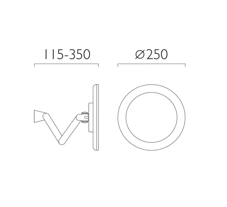 Le module LED intégré a une puissance maximale de 7,3W avec une colorimétrie de 3000K (blanc chaud) et diffuse 146 lumens. Possède un interrupteur. Doit être montée à l’horizontal. Le diamètre du miroir est de 25 cm. La profondeur se situe entre 11 et 35 cm.