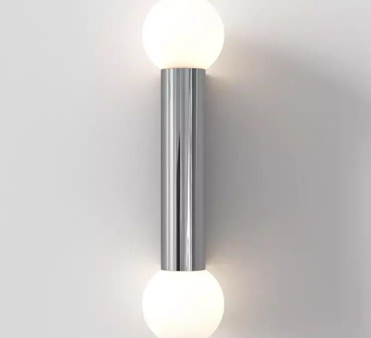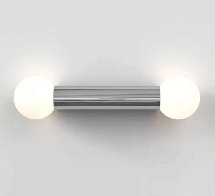 Découvrez l’applique pour salle-de-bain Ortona Twin, finition chrome poli, imaginée par le studio de la célèbre maison britannique Astro.