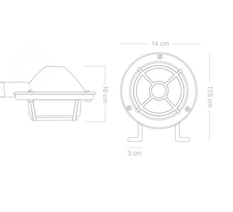 L’applique murale d’extérieure mesure 14cm de longueur, 10cm de hauteur et 17,5cm de profondeur. L’ampoule LED n’est pas incluse. Il est recommandé d’utiliser une ampoule G9 avec une puissance maximum de 6W. Les vis ne sont pas fournies. Non dimmable. Driver non requis.