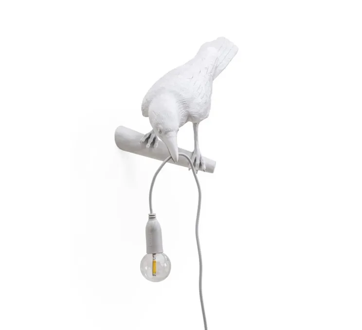 Bird Lamp Looking Left White Outdoor est une applique d’extérieur imaginée par Marcantonio pour la marque italienne Seletti.
