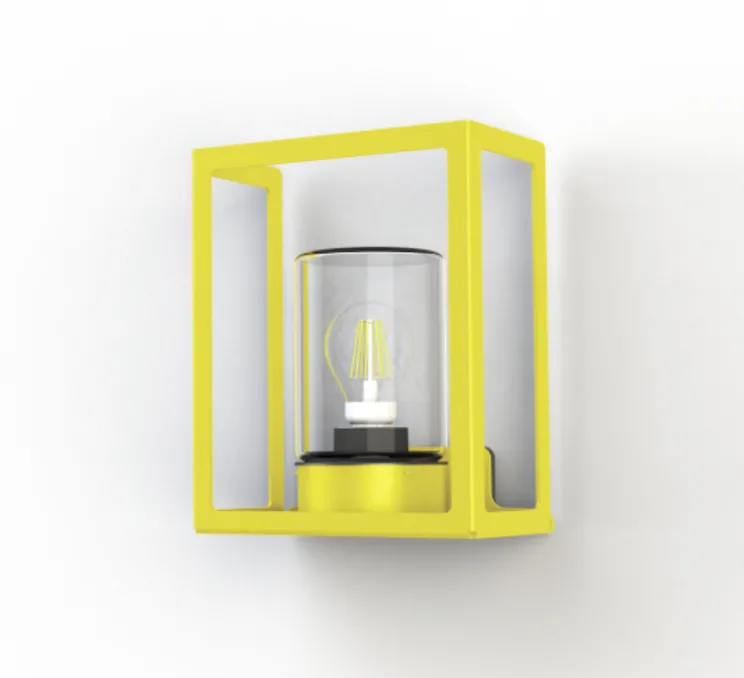 Esthétiquement, l’applique d’extérieur Hugy N° 1 présente une forme cubique graphique, avec un verre clair teinté et une finition jaune souffre qui lui confère une allure moderne et originale. Pour un effet décoratif saisissant, installez-la le long d’un mur ou à l’entrée de votre jardin, créant ainsi une ambiance lumineuse et accueillante dans votre espace extérieur.