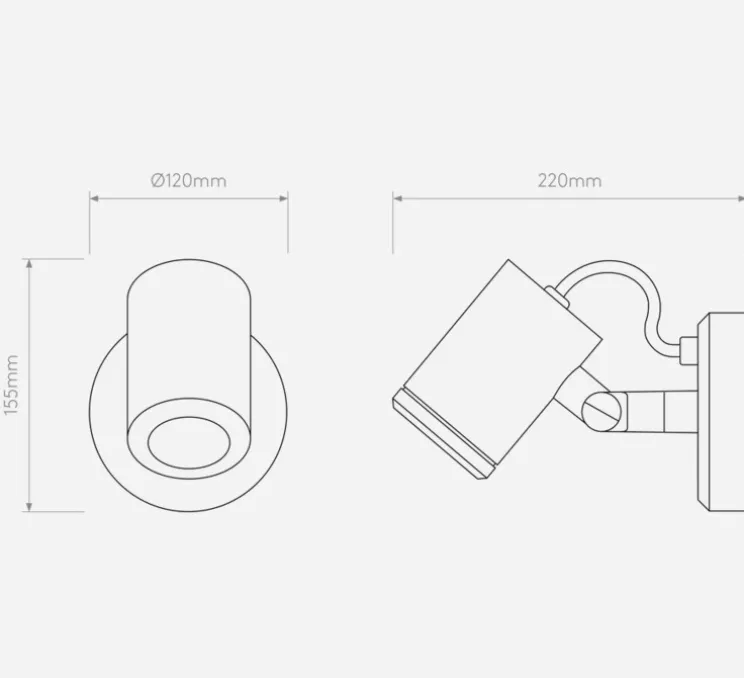 Les dimensions de l’applique sont de 15.5 cm de hauteur et 12cm de longueur et 22cm de profondeur. Le diamètre du spot est de 7,5cm.