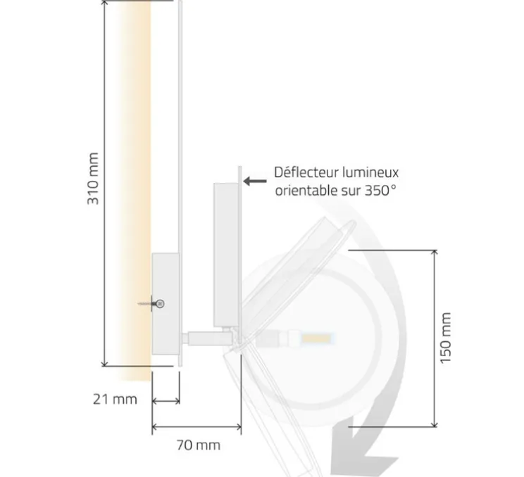 Équipée d’une source lumineuse incluse à haut indice de rendu des couleurs (IRC >95), cette applique est dimmable pour s’ajuster à chaque moment de la journée. Son indice de protection IP44 la rend compatible avec les zones humides.
