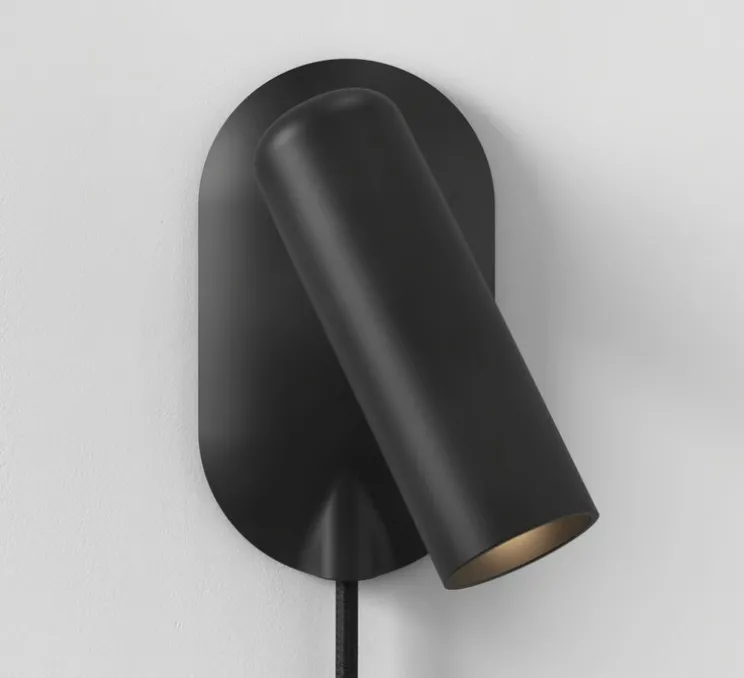 Conçue par le Studio Astro pour la marque britannique Astro, l’applique liseuse Gio est pensée pour un usage intérieur décoratif ou architectural et se décline ici en finition noir mat, dans un format compact et discret.