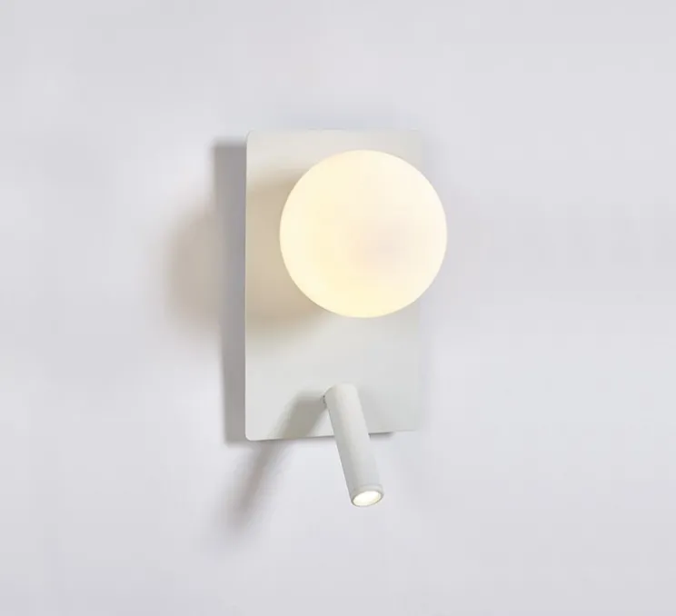 Idéale pour une chambre ou une tête de lit. Son globe en verre opale diffuse une lumière douce et chaleureuse, parfaite pour créer une ambiance intimiste, tandis que sa liseuse orientable intégrée offre un éclairage direct et précis, pensé pour les moments de lecture.