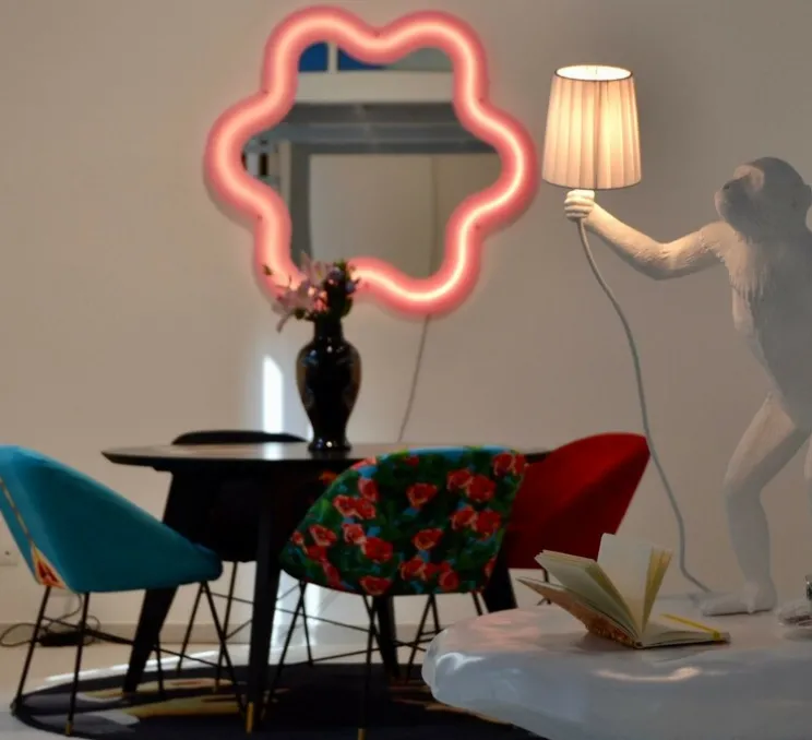 Laissez-vous séduire par l’applique miroir lumineux Supercurve, une création remarquable du BBMDS Design pour la marque Seletti.