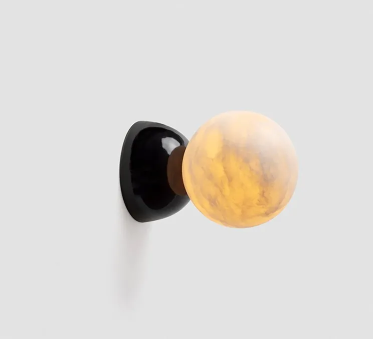 L’abat-jour en albâtre diffuse une lumière douce et homogène à 360°, créant une ambiance chaleureuse et raffinée. Chaque pièce, unique par ses nuances naturelles, apporte du caractère à tout espace. La base en céramique noire émaillée, façonnée à la main, complète l’ensemble en ajoutant une touche texturée et élégante. Grâce à son design épuré, cette applique murale s’intègre harmonieusement dans des intérieurs contemporains et sophistiqués.