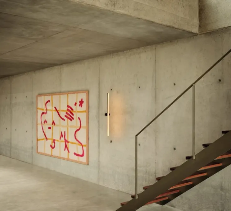 Son design découle d’une structure tubulaire aux lignes douces qui se fixe au mur. La source lumineuse est mise en avant à travers un tube rappelant un néon dont la structure noire permet de marquer les contours. C’est cette lumière diffuse qui remplit l’espace en y ajoutant de la beauté. Son design linéaire et unique, un segment de lumière presque plat, a été rendu modulaire et asymétrique pour créer un système d’éclairage doux et surprenant.
