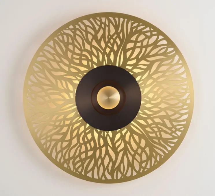 Son allure majestueuse est définie par une grande couronne ajourée, au centre de laquelle se succèdent des disques concentriques, menant jusqu’à un cœur lumineux. Atmos, grande sœur de l’applique Earth, séduit par ses dimensions généreuses et ses nombreuses possibilités de personnalisation grâce aux multiples combinaisons de décors proposées.