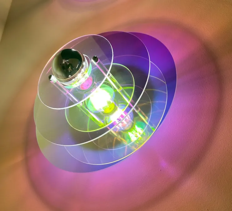 Ce luminaire décoratif est conçu pour habiller les espaces intérieurs d’une lumière subtile et changeante, pensée comme une œuvre murale à part entière.