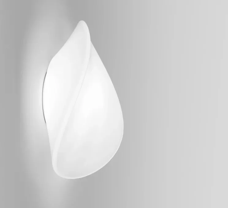 Son diffuseur en verre soufflé blanc brillant et ses courbes aériennes la rende parfaite pour une installation dans un couloir, une chambre ou un salon pour créer un point lumineux à la fois graphique et discret.
