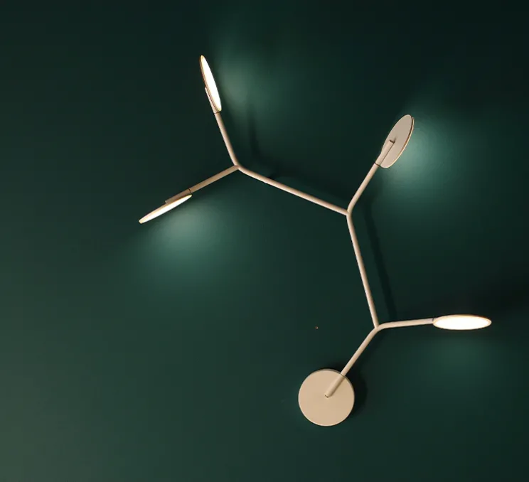L’applique Ballon est composée d’une base, dont part un bras en arborescence, accueillant quatre têtes lumineuses faites d’un petit disque de métal de 11 centimètres de diamètre, chaque disque pouvant pivoter à 330°. Ballon se monte dans n’importe quelle direction souhaitée grâce à un support situé au milieu du bras. Ballon est un luminaire versatile, se transformant et s’adaptant à chaque espace, chaque pièce, chaque atmosphère, grâce à une grande variété d’options. Ballon apporte une douce touche organique et authentique aux intérieurs, que l’applique soit installée dans une chambre, une pièce de vie ou un couloir.
