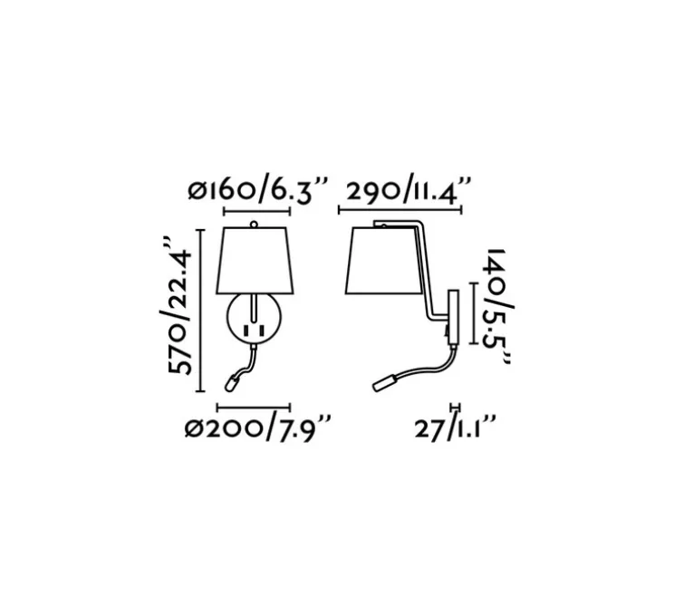Outre l’éclairage animé par la liseuse, l’applique est également équipée d’un abat-jour et d’une douille E27. Ces deux fonctionnalités distinguent votre intérieur et habillent vos murs. L’applique murale dispose de deux interrupteurs, un pour la liseuse et l’autre pour l’éclairage principal.