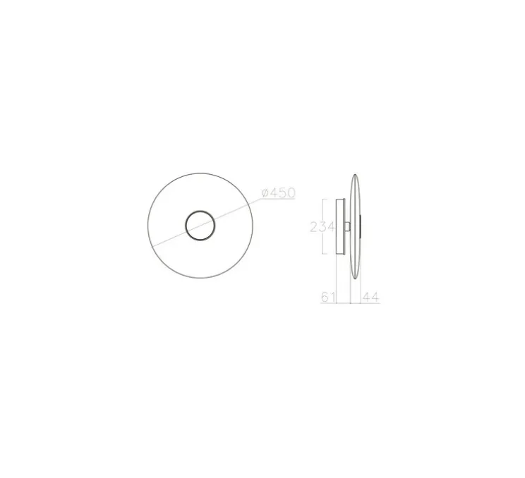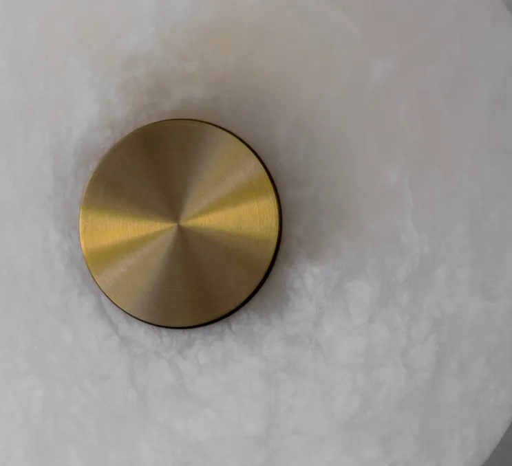 L’applique murale Bide 450 arbore un design circulaire élégant avec un diamètre de 45 cm pour une profondeur de 6 cm. Son fini en laiton confère une touche de sophistication à tout espace, tandis que sa base en albâtre apporte légèreté et douceur à l’esthétique globale.