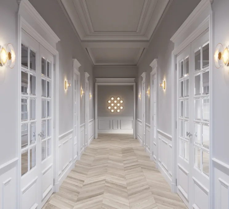 L’applique Blossi convient aussi bien aux projets résidentiels qu’aux espaces publics. Elle peut être placée au mur ou au plafond, seule ou à plusieurs en ligne. Elle trouve parfaitement sa place dans une entrée, un couloir ou dans une cage d’escalier.