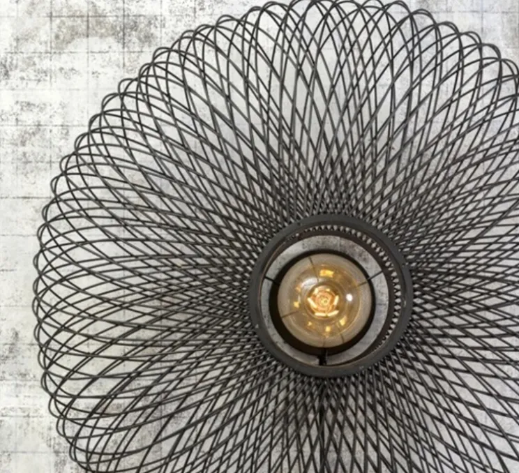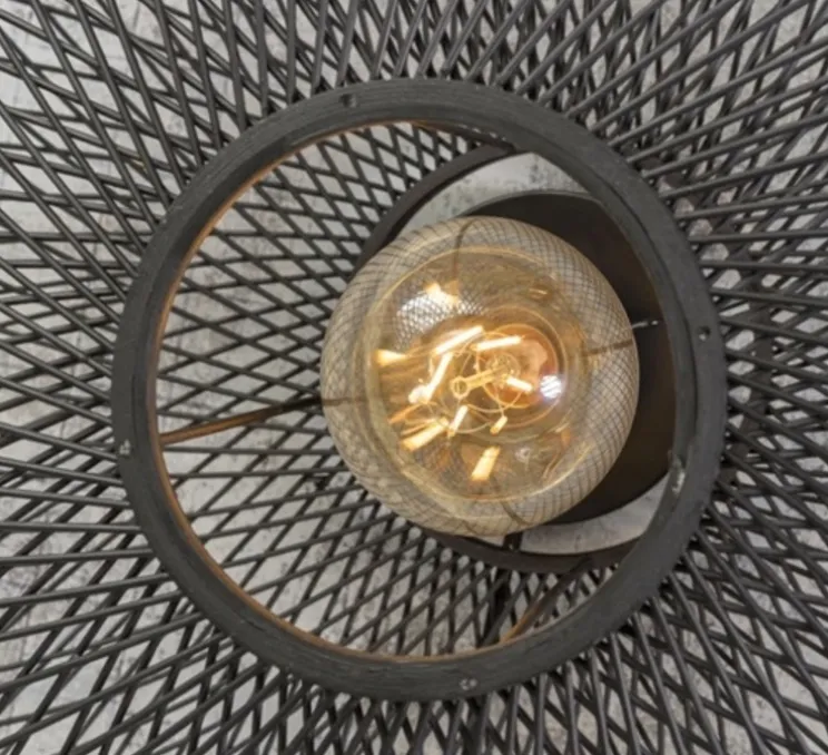 L’abat-jour mesure 60cm de diamètre et 25cm de hauteur. Un câble ajustable en textile noir, mesurant 2,5 mètres, est fournie. Un interrupteur on/off se trouve sur ce câble.