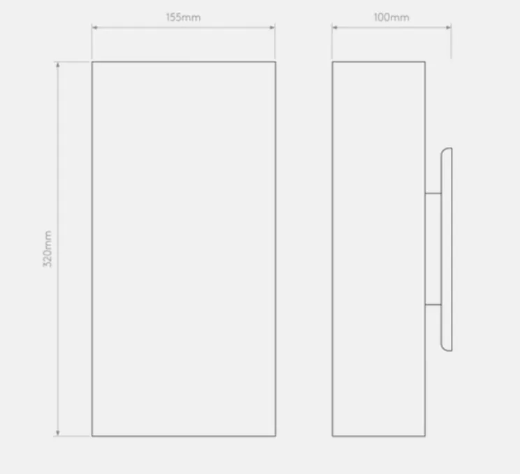 - L 15.5cm x H 32.0cm x P 10.0cm