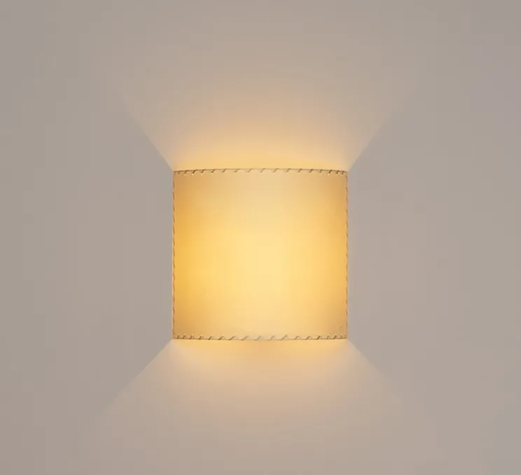 L’applique murale Comodín, au design épuré, se distingue par un abat-jour arqué en parchemin qui dissimule la source lumineuse pour une lumière douce et diffuse. Fabriqué à la main, cet abat-jour illustre l’engagement de Santa & Cole envers des matériaux naturels, reflétant l’harmonie entre artisanat et innovation.