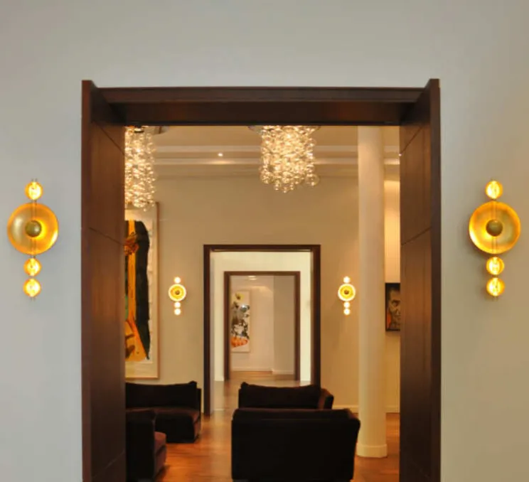 Pour cette applique, le laiton reste le matériau de prédilection puisque brossé, il se met au service d’une lumière douce et poli, il est à l’origine de vifs éclats…