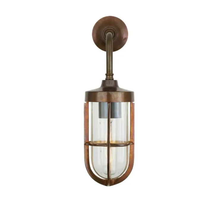 Cette applique murale à la finition bronze possède un design industriel et apporte une lumière douce et chaleureuse à votre intérieur. Fait de laiton et de verre, la lampe Carac trouve parfaitement sa place dans une cour, une entrée ou encore le long d’un couloir.