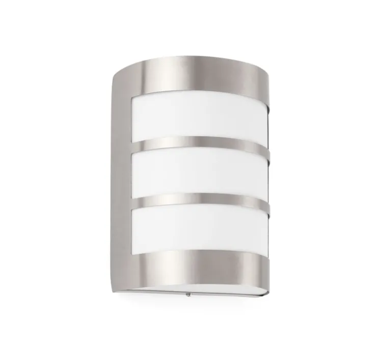 Cette applique très sobre et très design est fabriquée en acier inoxydable et en polycarbonate pour le diffuseur.