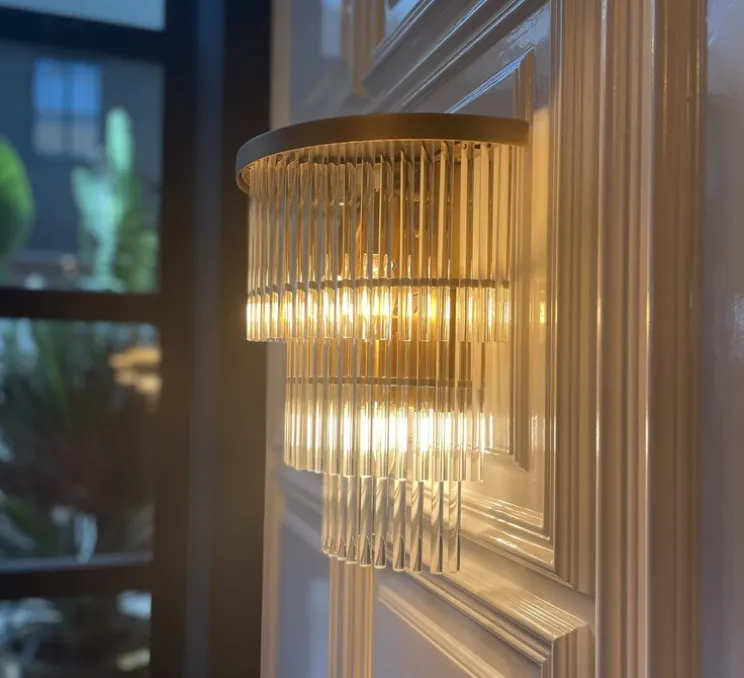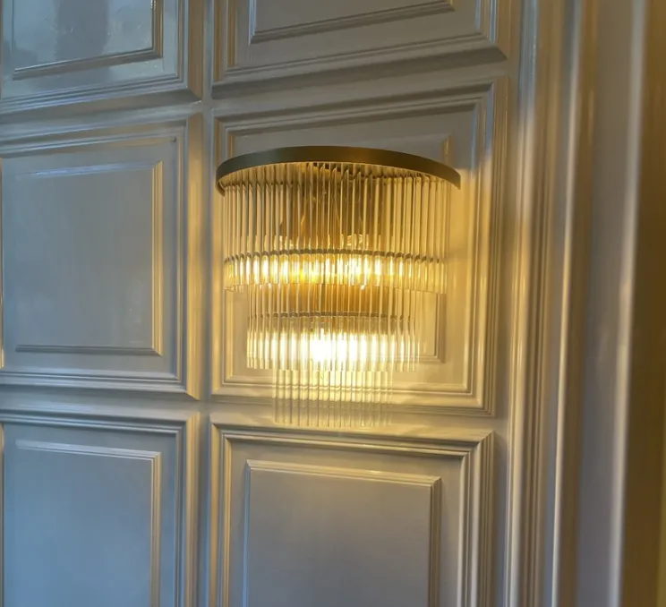 Composée de trois niveaux de tiges en verre transparent, cette applique diffuse une lumière captivante, ajoutant une ambiance élégante et pleine de charme à votre espace.