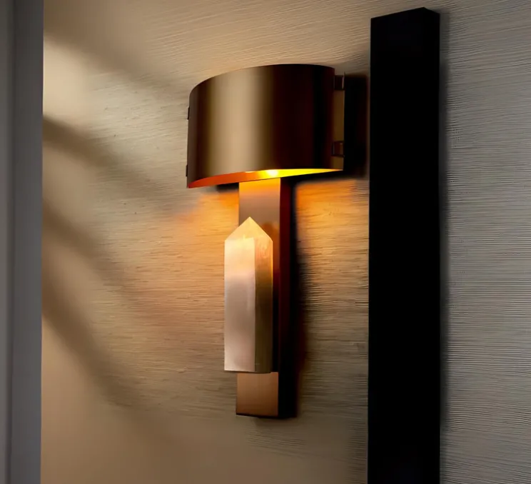 L’applique Evora se distingue par sa finition en laiton antique, qui met en valeur la beauté du cristal de roche. Son design cubique et sa forme épurée s’intègrent parfaitement à des décors Art Déco ou contemporains. Placez-la dans un salon, une entrée ou une chambre pour ajouter une touche de luxe et de lumière douce. Le cristal de roche diffuse une lueur captivante qui enrichit l’ambiance tout en mettant en valeur les textures environnantes.