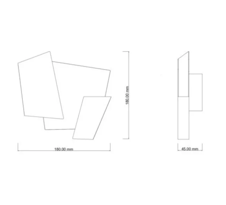 L’applique Folded mesure 18 cm de longueur, 18 cm de hauteur et 4,5 cm de profondeur. Le module LED intégré d’une puissance de 4W diffuse 560 lumens avec une colorimétrie de 2700K (blanc chaud). Non dimmable.