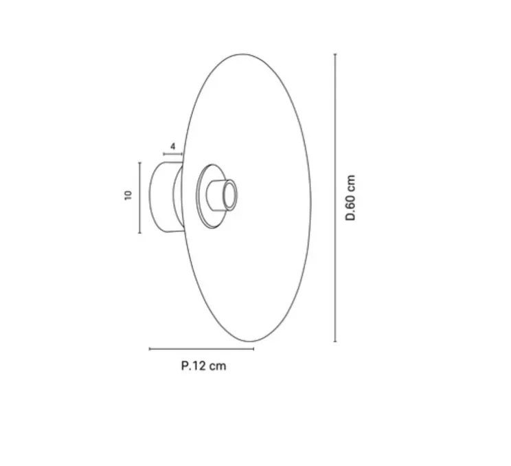 Cette applique est équipée d’une patère murale en métal peint finition sablée et adaptable DCL. Ses dimensions sont de 60 cm de diamètre et de 12 cm de profondeur.