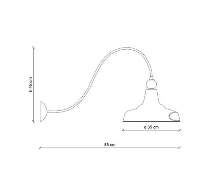 Il se présente sous la forme d’une applique à bras au bout de laquelle est suspendue un abat-jour conique en métal. Le bras de l’applique est arrondi pour donner de l’élégance au luminaire. L’abat-jour est ornementé de détails en céramique blanche qui renforce son aspect vintage.