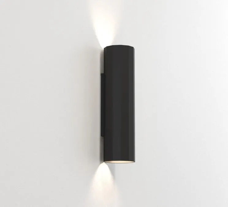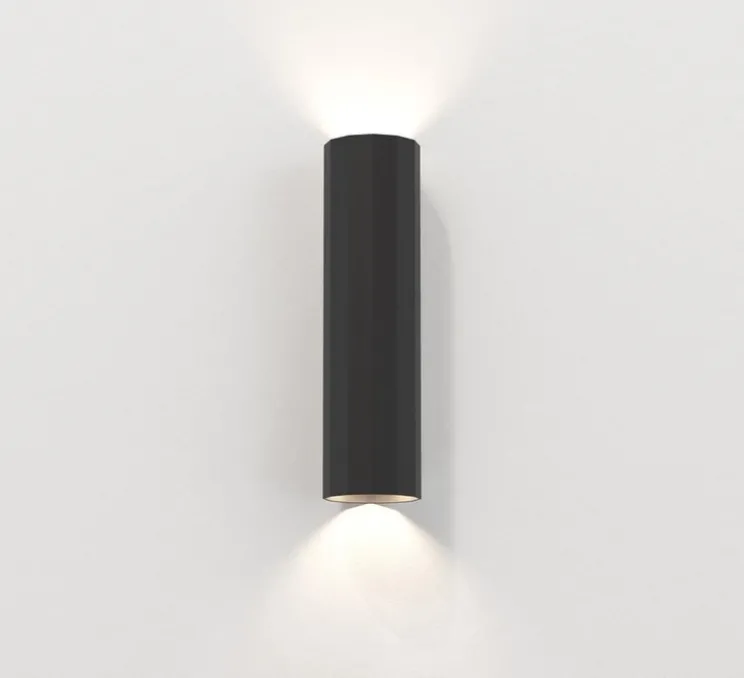 Cette applique murale, finition noir mat, mesure 30cm de haut, 8cm de long et 8cm de profondeur.