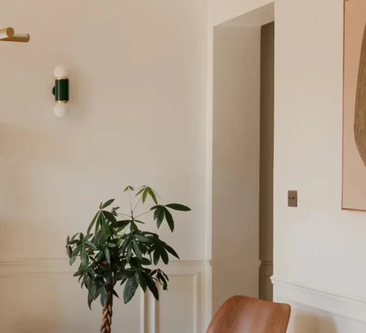 Le design de l’applique Hélène joue sur l’équilibre entre deux globes lumineux et un tube central, évoquant une silhouette rétro revisitée. Ici en finition laquée verte, elle s’installe à la verticale ou à l’horizontal. Hélène habille le mur tout en diffusant une lumière douce et trouve sa place idéalement dans une entrée, un couloir, un salon ou en paire de part et d’autre d’un lit.