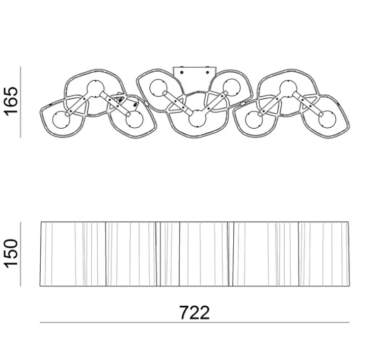 Honey joue sur la répétition, créant deux configurations linéaires de trois ou neuf modules. Cette disposition crée un motif visuellement captivant et unique. La lumière chaude est diffusée à la fois directement et indirectement, créant un éclairage doux et enveloppant dans la pièce. Les diffuseurs opalins ondulés tamisent la lumière, ajoutant des nuances fascinantes et une ambiance chaleureuse à votre intérieur.
