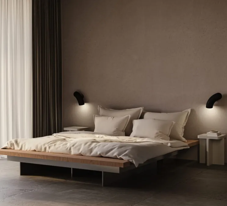 Par son revêtement noir sablé, l’applique a du caractère et dynamise son environnement. Dans un salon ou dans une chambre, Hyphen unit les opposés pour créer de l’harmonie. Sa couleur sablée fait ressortir les contours arrondis du luminaire pour lui donner une présence plus brute et naturelle. Grâce à ses versions droite et gauche, l’applique Hyphen est aussi idéale en tête de lit.