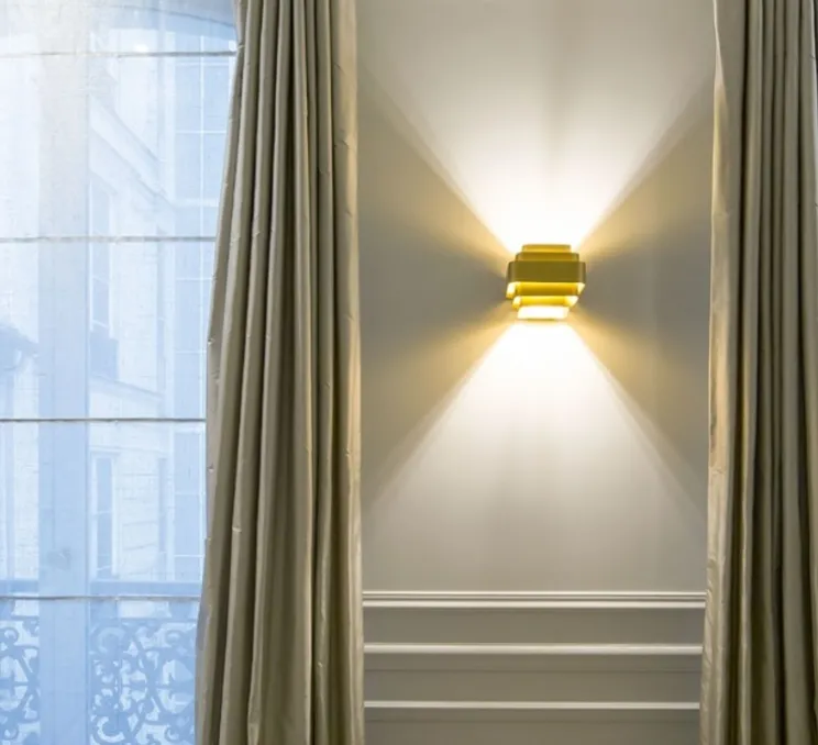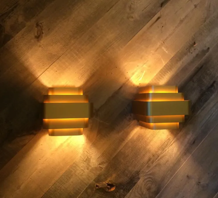 De coloris or, ce luminaire nous fait penser à un temple Aztèque. Grâce à sa forme atypique, J.J.W apporte un éclairage diffus et agréable dans l’ensemble de la pièce. Fabriqué de manière artisanale en aluminium laqué, cette applique murale ne cesse d’étonner. Avec son style contemporain et industriel, la J.J.W créée une ambiance exceptionnelle dans votre maison. Généralement disposée dans un salon, cette lampe se montre idéale pour illuminer les salles de réceptions, hôtels et restaurants.
