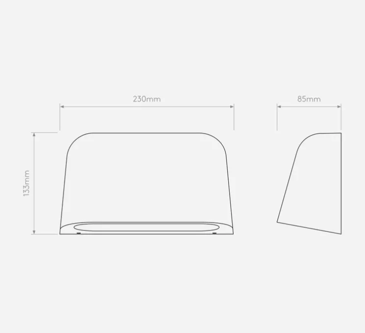 Le luminaire mesure 13,3cm de hauteur, 23cm de largeur et 8,5cm de profondeur. L’ampoule LED n’est pas incluse, il est recommandé d’utiliser 2 ampoules GU10 avec une puissance maximale de 6W chacune. Driver non inclus et dimmable selon le type d’ampoule.. Dotée d’un IP44, l’applique murale s’installe en extérieur mais aussi dans une salle de bain dans une zone 2 et 3.