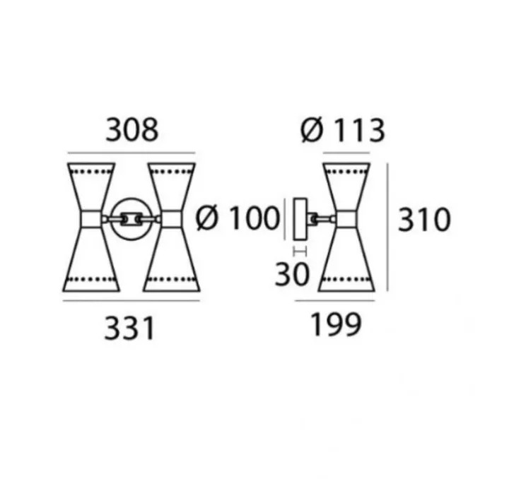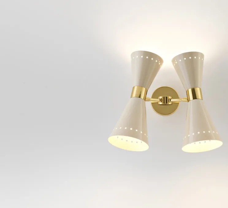 Applique murale, Megafono double, ivoire, laiton, Ø33,1cm, H31cm – Stilnovo