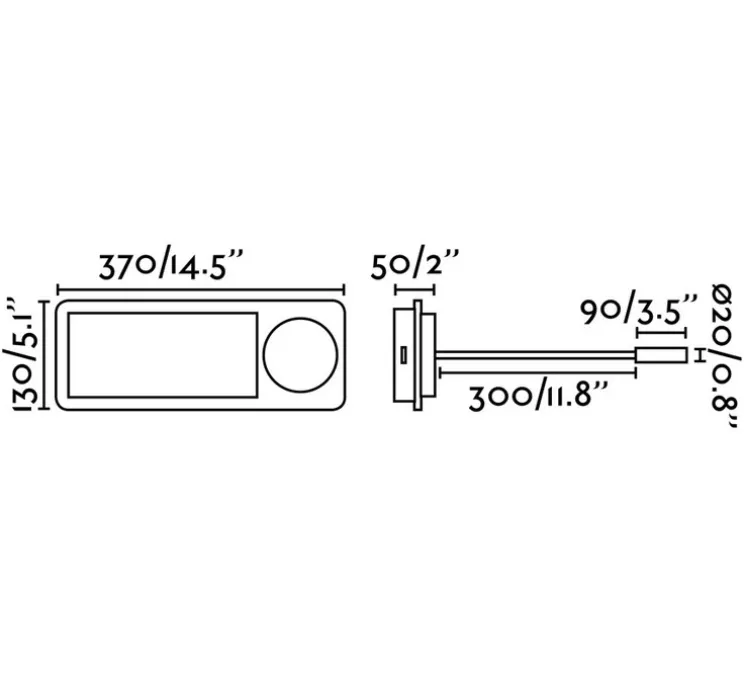 La source lumineuse est incluse (LED 3000k, 67LM), l’applique mesure 37cm de long, 13cm de haut et a une profondeur de 5cm.