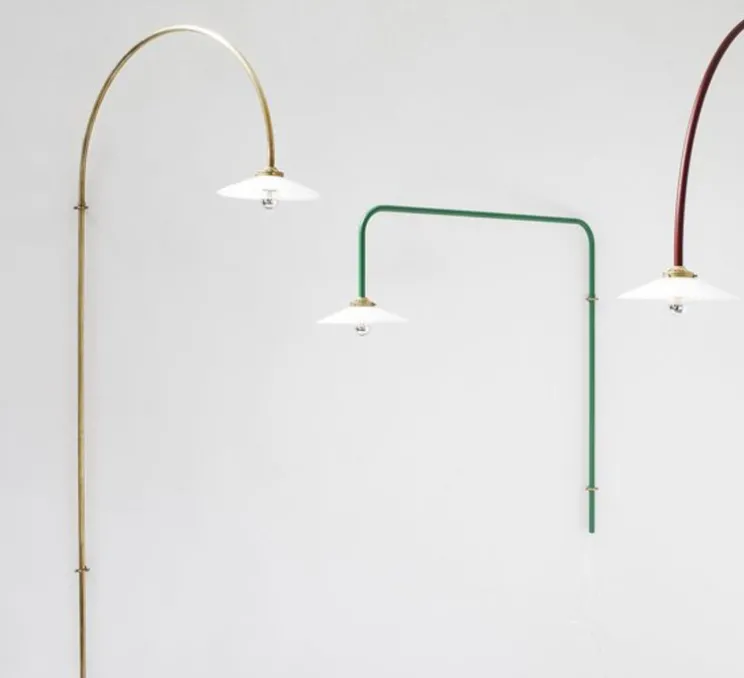 Le design de cette lampe est d’une simplicité presque naïve, et pourtant, les lignes qui la compose remplissent l’espace de manière ludique et colorée. L’applique n°2 est composée d’un tube en laiton courbé et d’un abat-jour blanc qui, selon Hannes Van Severen, « a une forme fantastique : parfaitement neutre ».