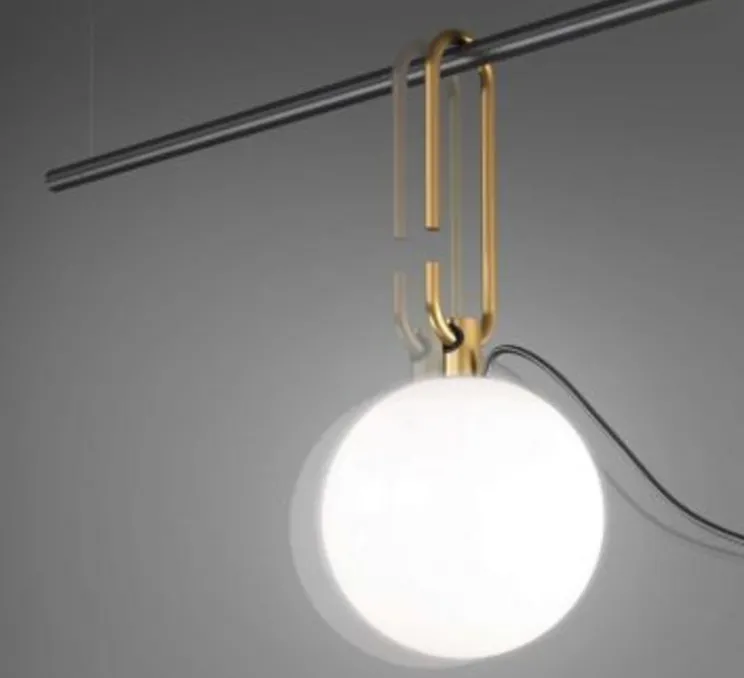 NH est formé d’une sphère en verre soufflé blanche (diamètre 14cm) ainsi que d’un anneau en laiton brossé. Celui-ci s’accroche à une structure murale en aluminium peint en noir. Cette applique en aluminium mesure 152cm de long. La source lumineuse n’est pas incluse. Nous vous conseillons une ampoule LED E14, 5W. Interrupteur avec prise.