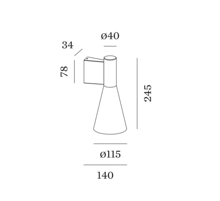 L’applique mesure 11,5 cm de diamètre et 24,5 cm de hauteur. L’ampoule n’est pas incluse. Nous recommandons une ampoule GU10 12W max.