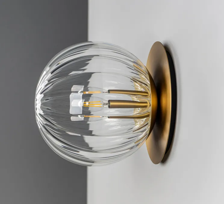 L’applique ou plafonnier Pulsar 200 Dries se compose d’une fine base en laiton, surmontée d’un globe en verre transparent strié. Sa structure discrète est la touche minimaliste qui ajoutera de la personnalité à votre décor. Sa composition très Art Déco donne du style à votre pièce, que ce soit dans une chambre, un couloir ou un salon.