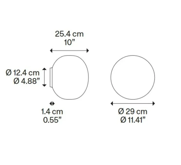 Afin de projetter un éclairage diffus à 360 degrés, l’applique murale Volum 29 nécessite une ampoule LED E14 (source non incluse) de dimensions maximales de 8,5cm de diamètre. L’applique possède une fonction dimmable, vous permettant de régler l’intensité lumineuse selon vos préférences; pour cela il faut la compléter d’une ampoule LED également dimmable.
