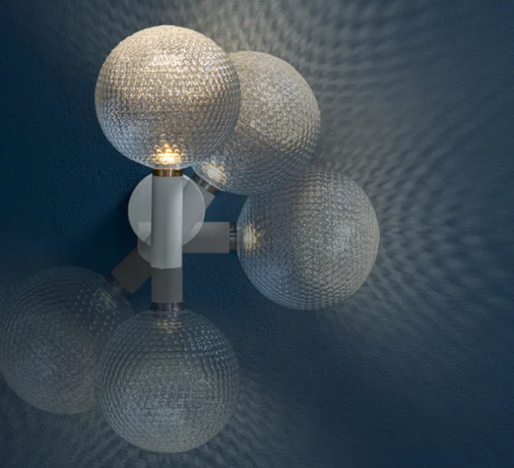 L’applique PAR 18 se distingue par son globe en verre soufflé blanc à la texture irrégulière, rappelant une balle de golf. Cette texture unique, créée par des maîtres verriers bohémiens, diffuse une lumière douce et subtile qui joue avec les ombres pour créer des effets visuels captivants. Parfaite pour un salon, une entrée ou un couloir, elle ajoute une touche moderne et artistique à tout espace.
