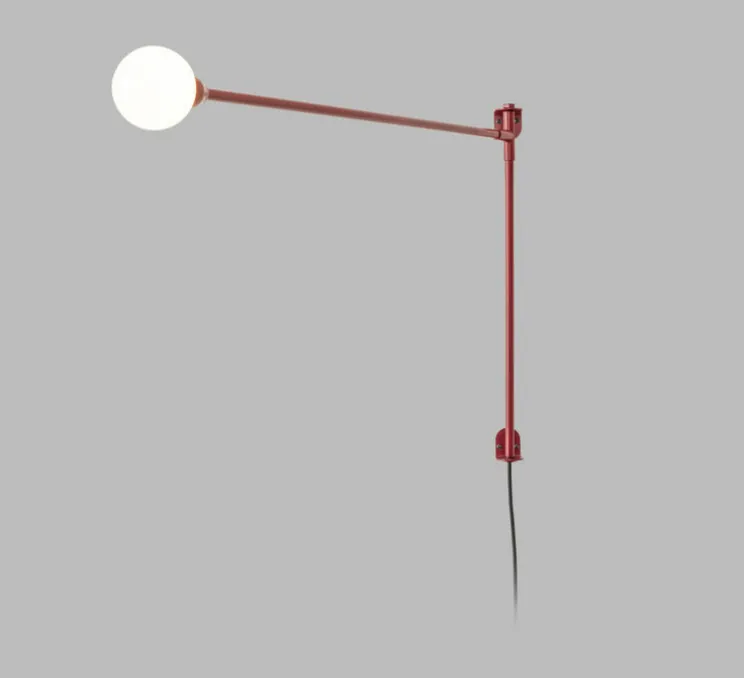 Découvrez la version mini de l’iconique applique potence pivotante, finition rouge, une réédition de la célèbre designer Charlotte Perriand, par la maison italienne Nemo Lighting.