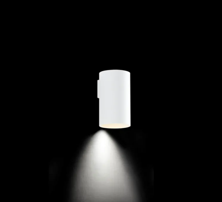 Les dimensions de l’applique murale sont de 11,5 cm de hauteur et 6,7 cm de diamètre. Disponible en différents coloris (noir, blanc, cuivre et aluminium brossé) et en différentes tailles avec ou sans le système LED.