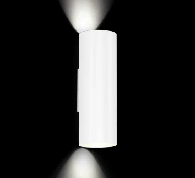 Les dimensions de l’applique murale sont de 20 cm de hauteur et 6,7 cm de diamètre. Disponible en différents coloris (noir, blanc, cuivre et aluminium brossé) et en différentes tailles avec ou sans le système LED.