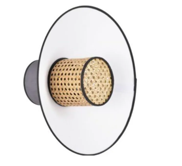 L’applique Singapour est un empilement de 3 abat-jours en lin lavé et en cannage.