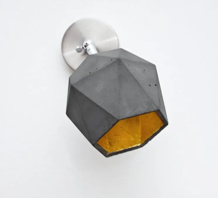 Coulée et fabriquée à partir de béton, cette applique combine une couleur or noble avec le gris foncé contrastant du béton brut.