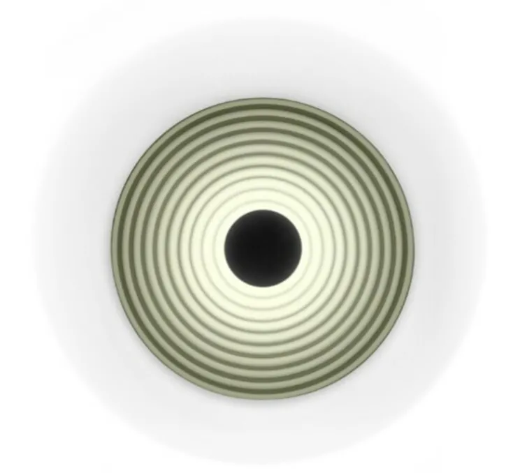 Le disque a un diamètre de 30 cm tandis que le cache de la source mesure 7,5 cm de diamètre.
